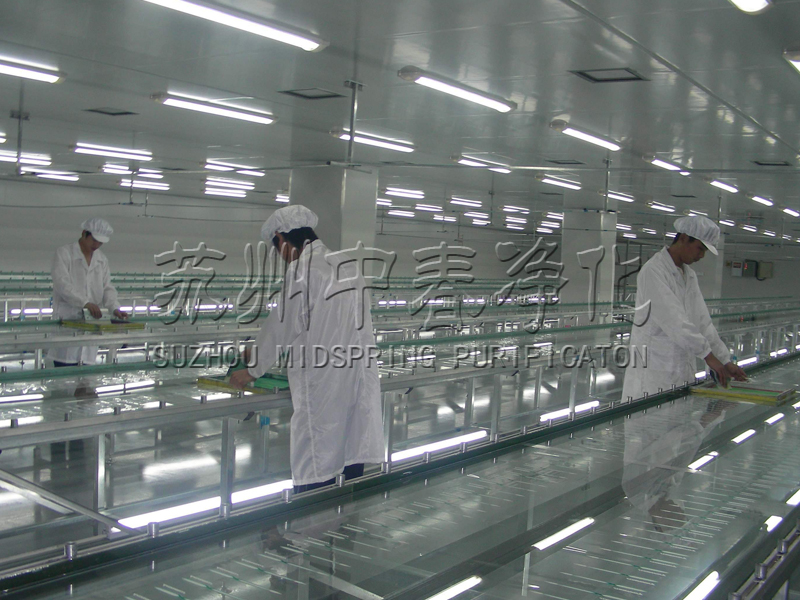 根據蘇州中春凈化科技有限公司提供的資料顯示:食品凈化車間面積應與生產相適應,布局合理,排水暢通;車間地面用防滑、堅固、不透水、耐腐蝕的材料修建,且平坦、無積水、并保持清潔;車間出口及與外界相連的排水、通風處裝有防鼠、防蠅、防蟲設施。
