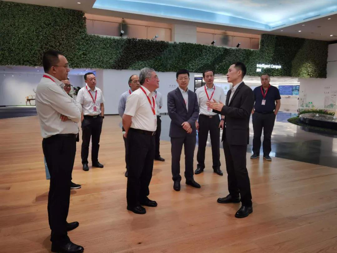 中國建研院副總經理范圣權、紀委書記胡振金,華為大企業業務部總裁王輝、智慧園區業務部CTO王結紅,以及雙方相關業務部門負責人出席了參觀會談。